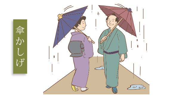 การเอียงร่มหรือ 傘かしげ ถือไปคนละทางกับที่อีกฝ่ายยืน