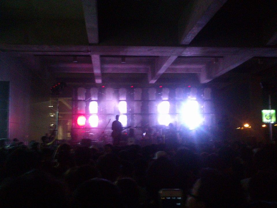 เมื่อทุกคนบนเวทีพร้อมเล่น เราก็พร้อมจะเสพ เป็นการยืนดูสดคนเดียวที่อิ่มเอมใจนะ แม้คนที่ยืนรอบๆ จะยืนดูกับเพื่อน ดูกับแฟน (หมั่นไส้คู่ข้างหน้า / เขาหวานกันจนน่าอิจฉา? / เปล่า หยอกกันไปมาจนทำเสียสมาธิและอรรถรสในการชมสด / เขาเรียกอิจฉาไหมว่ะ? / เออ ก็ได้ แล้วแต่!) สีหน้าเรางี้ผ่องแผ้วผุดพันยิ่งนัก เพลงแรกผ่านไป เพลงสองผ่านไป เพลงสามผ่านไป ความจรรโลงใจ ปราสาทหูรับเสียงส่งความปลื้มประทับใจไปที่จิต หลับตาดู หูฟัง และบอกตัวเองว่า มาถึงแล้วนะ บรรลุความอยากแล้วนะ เก็บภาพที่ไม่ชัดมา 2-3 ภาพในช่วงเพลงแรก แล้วก็เก็บโทรศัพท์ลงกระเป๋า เพราะไม่อยากเสียอรรถรสในการดูสดที่อุตส่าห์ถ่อมาแต่ไกลโพ้น อยากเสพบรรยากาศ เสียงเพลง และสีสันตอนนั้นให้เต็มที่ (จริงๆ แล้วแบตหมด!!) เพล้ง!