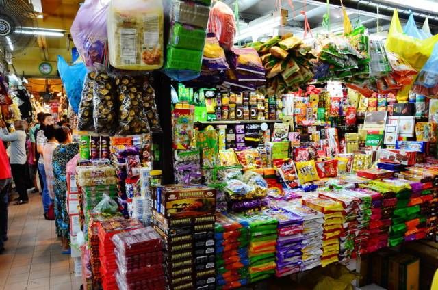แม่ค้าแม่ขายเรียงรายเต็มฟุตปาธ ผู้คนหลากเชื้อชาติเดินกันเต็มถนน