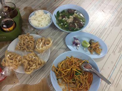เป็นร้านที่เดินออกมาจากวัดเจ็ดยอดเพียงแค่ไม่ถึง5นาทีก็ถึงเดิน เข้าไปก็สั่งมาสามอย่างด้วยกัน คือ ข้าวซอยไก่ ข้าวซอยปลา และเกาเหลาหมูบอกได้คำเดียวว่าอร่อยมากกก น้ำกะทิกับเครื่องหลายๆอย่างที่รวมกันเป็นข้าวซอยนี่บอกได้เลยว่ามาเชียงรายต้องมาลองนะ!