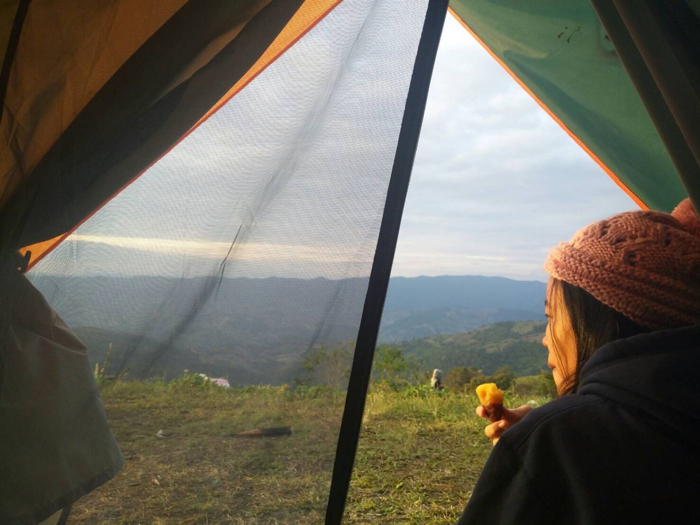 โฮมสเตย์ที่2 ที่เราพักนั้นอยู่ใกล้กับดอยผาหม่นมากๆ ป้าเจ้าของบอกว่าจริงๆเราควรมาดูพระอาทิตย์ขึ้นที่ดอยผาหม่นเพราะวันนี้โชคนี้ที่ได้เห็นรุ้งวงกลมด้วย สวยมาก เรารู้สึกเสียดายนิดหน่อย แต่ก็ไม่เป็นไร วันนี้อย่างน้อยเราก็ได้ไปผาตั้งแล้ว ซึ่งคนดูแลที่พักที่นี้ใจดีมาก