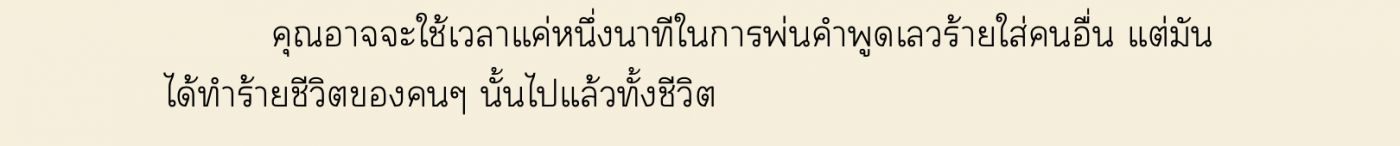 รู้สึกเจ็บจึกเข้าในหัวใจ เราไม่รู้หรอกว่าสิ่งที่เราพูดมันทำร้ายคนอื่นมากแค่ไหน คนพูดลืมไปแล้ว แต่คนโดนพูดใส่คือจำไม่เคยลืมจริง ๆ