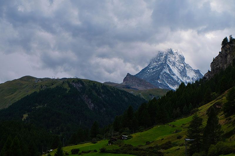 วันที่ผมมาอากาศชื้นมีเมฆมากปกคลุมทั่วฟ้าเทือกเขาสูงๆถูกบดบัง ผมก้าวลงจากรถไฟที่สถานีเซอร์แมทท์ เดินตรงไปยังโฮสเทล