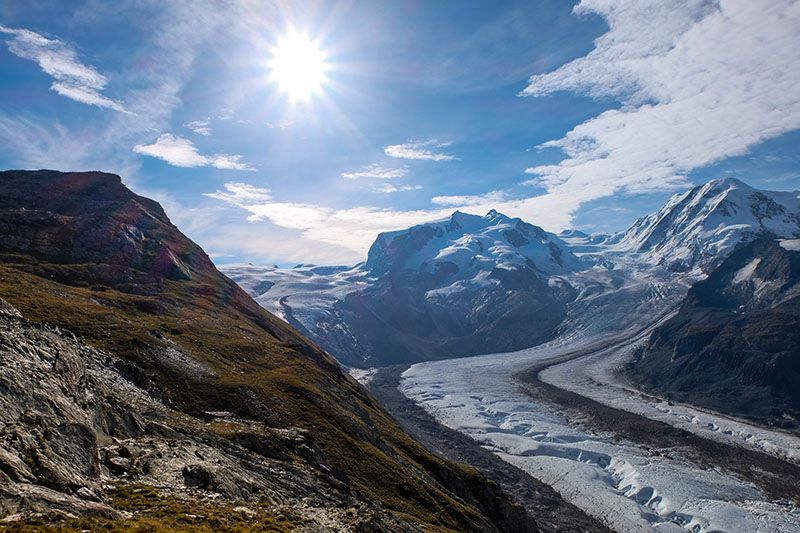 เหมือนสวรรค์เต็มใจ รุ่งขึ้นฟ้าเปิด สดใส วิวจากโรงแรมคือสิ่งที่เฟอร์เฟคที่สุด ผมรีบจัดการ ทานอาหารและเตรียมตัวไปขึ้นรถไฟขึ้นเขา ราคาก็เบาๆ ราวๆ 3000 บาทไทย (ขึ้นเขา Gornergrat)