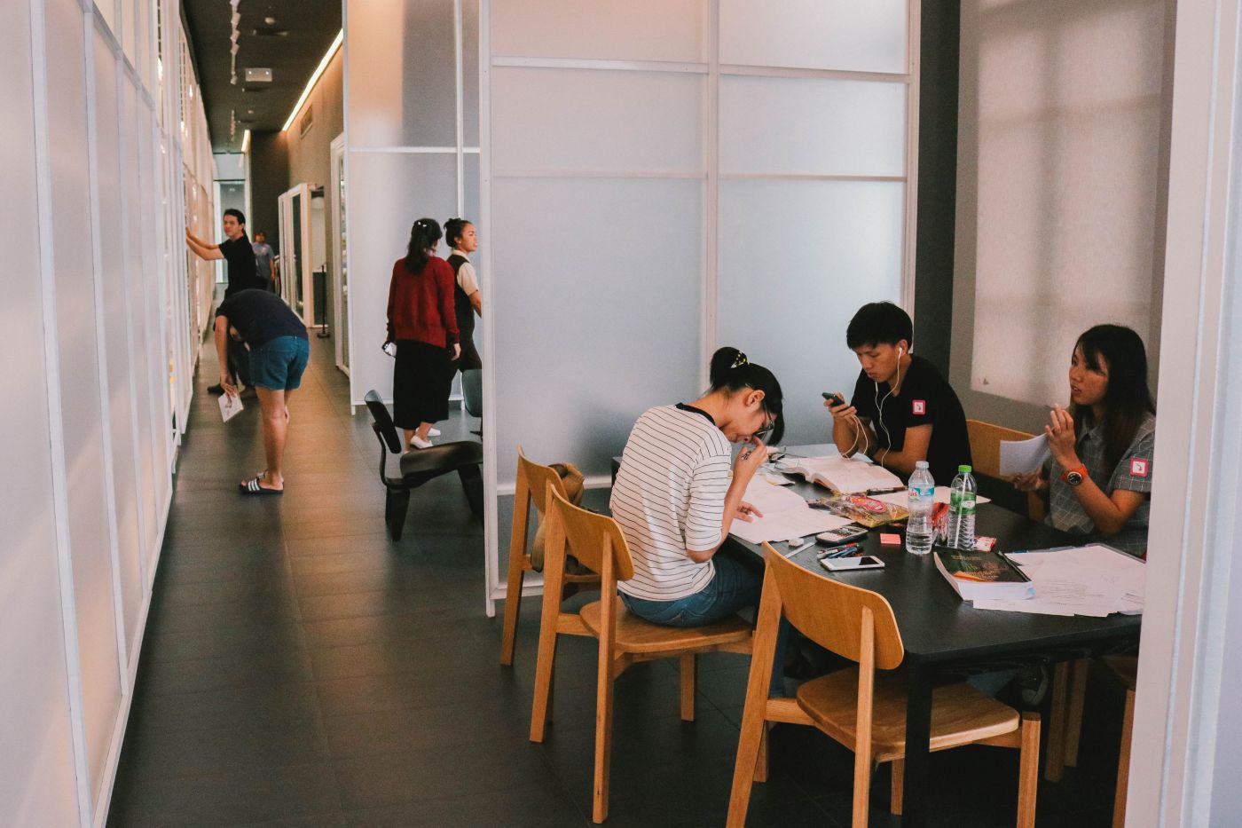 หนังสือเขาเยอะ เเละดีจริงๆ เป็นเรฟงานชั้นดีเลยล่ะและนอกจากชั้นสี่แล้วนะครับลงมาอีกชั้นนึงก็ยังสามารถมานั่งทำงานได้อีกเช่นกัน ชั้นนี้เป็นชั้นที่เต็มไปด้วยบรรดาชิ้นส่วนงานหลากหลายประเภท เป็นโซน Maker Space ที่มีเนื้อผ้าวัสดุต่างๆ ให้เราได้เดินดู สัมผัส กันเยอะแยะมากมาย และยังประดิษฐ์ของได้ด้วยนะ เหมือนจะเป็นงานหนัง (ไม่ได้ถ่ายมุมนี้มา ขอโทษด้วยครับ T T)