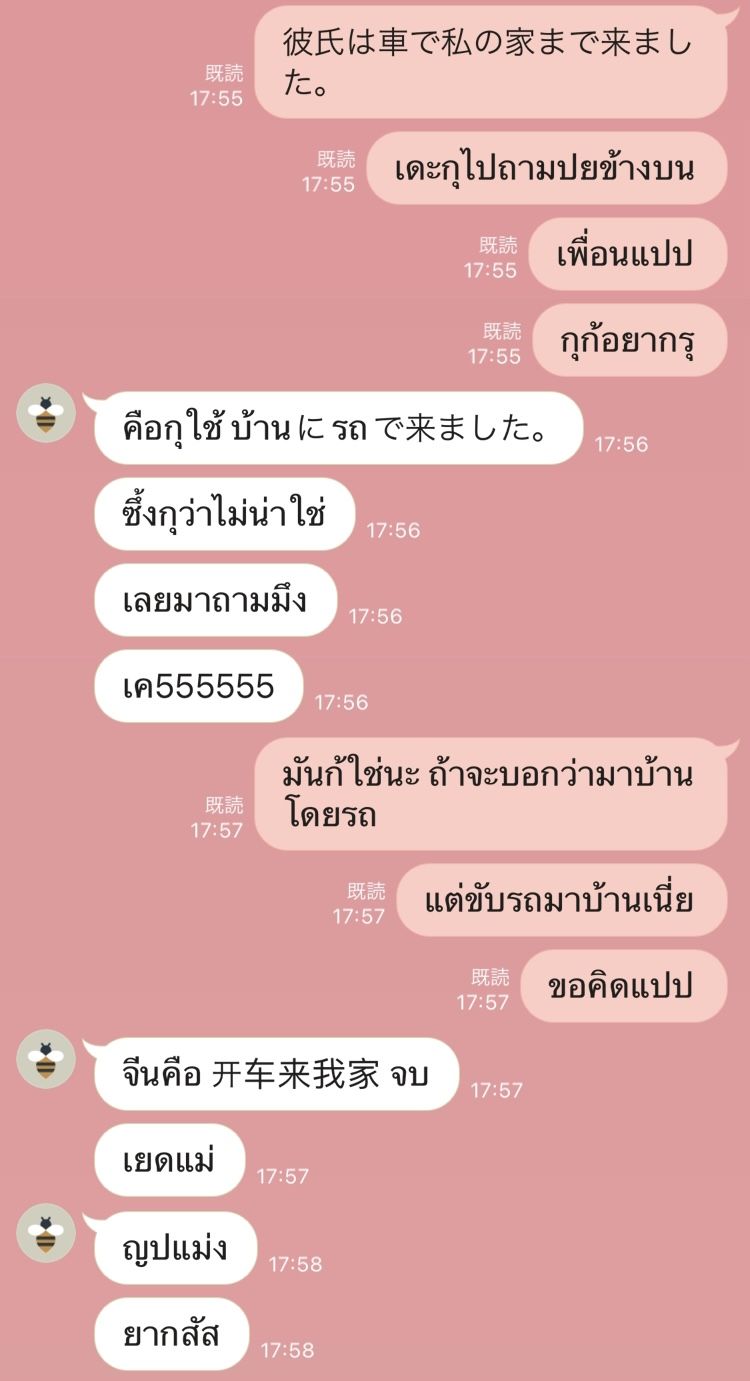 ใช่ค่ะ555555555 ประโยค 'แฟนขับรถมาที่บ้านฉัน' เป็นประโยคที่แสนจะธรรมดา แต่เราที่เรียนเอกภาษาญี่ปุ่นกลับใช้เวลาคิดอยู่นานมาก เพราะไม่รู้จะแปลเก็บบริบทให้ครบถ้วนยังไงดี เลยไปขอความช่วยเหลือจากเพื่อนในกลุ่มต่อค่ะ (วาระแห่งชาติมาก?)