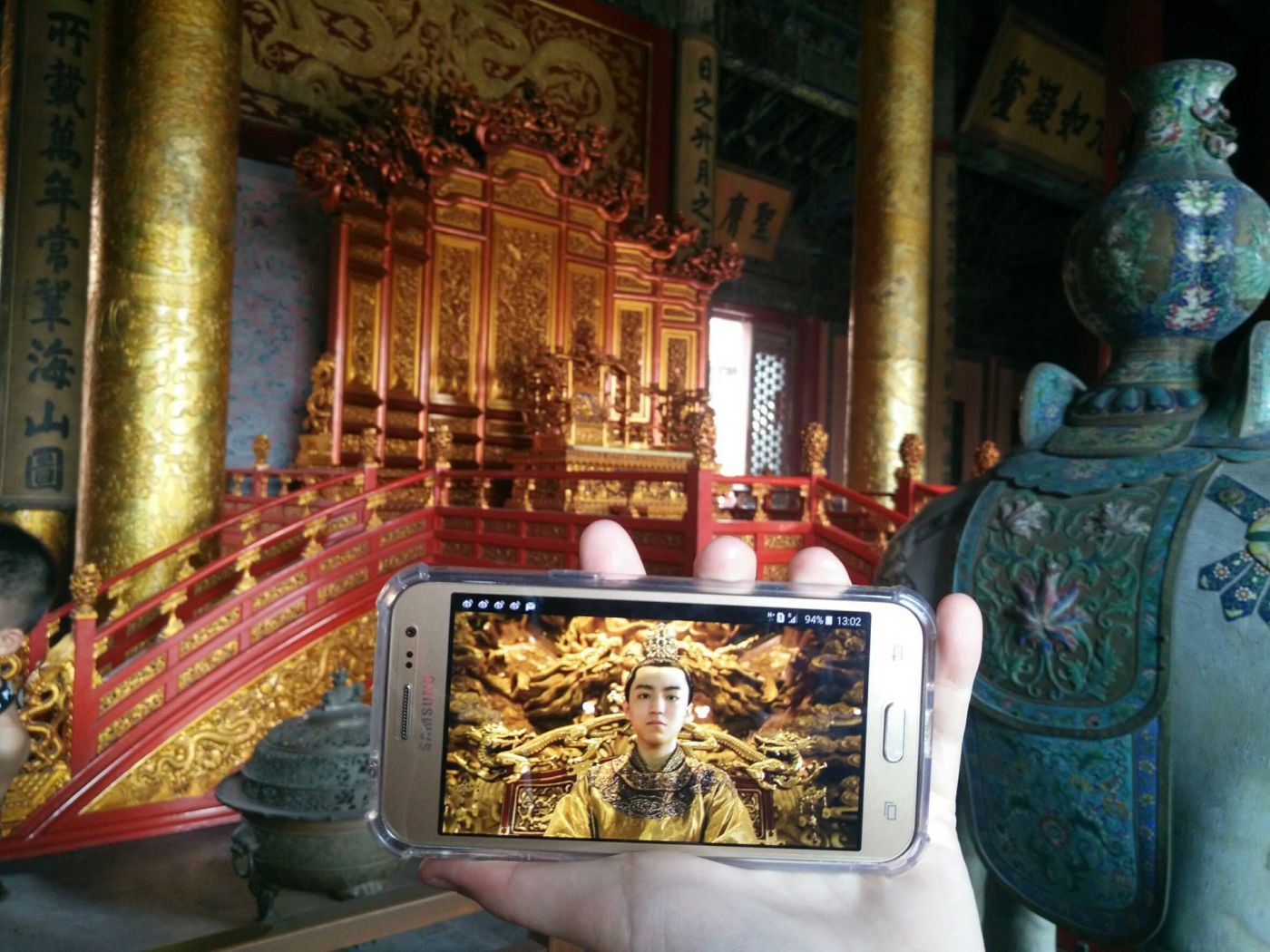 ในการมาเที่ยวพระราชวังต้องห้ามในครั้งนี้ มีมิชชั่นที่ต้องทำอยู่ค่ะ คือตั้งใจจะเอาเสี่ยวหวงตี้มาถ่ายรูปคู่กับบัลลังก์มังกรให้ได้ เอาจริงๆ มันเป็นบัลลังก์ของคนละยุคล่ะนะ ในเรื่อง The Great Wall คาดว่าคงเป็นสมัยราชวงศ์ฉินหรือเก่ากว่านั้น ส่วนพระราชวังต้องห้ามเพิ่งมาสร้างเอาในสมัยราชวงศ์หมิง แต่บัลลังก์มังกรก็คือบัลลังก์มังกร ได้มาส่งเสด็จในครั้งนี้ถือว่ามิชชั่นคอมพลีท ไอ้ครั้นจะให้ไปถ่ายที่กำแพงเมืองจีนสมกับชื่อหนัง นั่นก็ไกลไป ไว้ปีหน้าละกัน