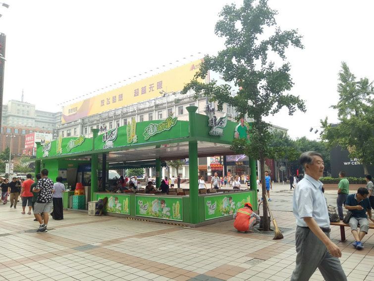 เอาของแพ็คใส่กระเป๋าเรียบร้อย ก็มาเดินลันล้าที่ Wangfujing อีกรอบ สำหรับเราเป็นรอบที่ 4 ส่วนหมิวกับนิ้งเป็นรอบที่ 5 แล้ว เพราะทั้งคู่แอบย่องมาเที่ยวตอนกลางคืนไปแล้วรอบนึง เป็นบ่ายวันอาทิตย์ที่อากาศดีอีกแล้ว ที่ Wangfujing มีร้านสไตล์ Snack Bar อยู่หลายร้าน เก๋ตรงที่แต่ละร้านมีสปอนเซอร์เป็นพวกเครื่องดื่มยี่ห้อดังๆ เลยตกแต่งร้านเพื่อการโฆษณากันอย่างเต็มที่ แล้วพรีเซนเตอร์โฆษณานี่แหละที่น่าสนใจ