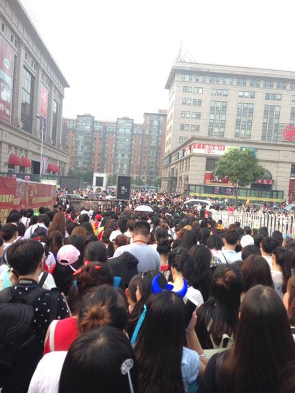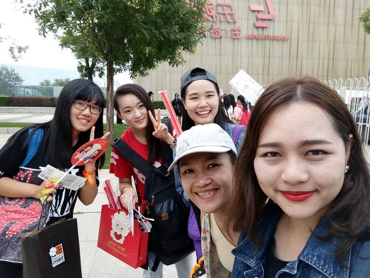 เท่าน้้นแหละ ทุกคนที่อยู่ตรงนั้นพากันแตกฮือ อ้าวนี่แอบฟังกันอยู่เหรอ? คงแปลกใจที่เห็นชาวต่างชาติบินข้ามน้ำข้ามทะเลเพื่อมาดู TFBOYS สินะ ทีนี้เลยถูกรุมถามใหญ่ด้วยภาษาจีน ภาษาจีน และภาษาจีน ได้ข่าวว่าตะกี้เพิ่งตอบเป็นภาษาอังกฤษไปเองนะ ถึงเวลายอมแพ้แล้วล่ะ เราหลบไปอยู่หลังน้องนิ้งที่น่าจะพูดภาษาจีนได้ดีสุดแล้วให้มาออกหน้า ที่พวกเขาสนใจกันมากๆ คือ ที่เมืองไทย TFBOYS ดังมั้ย? อันนี้เราตอบเป็นภาษาอังกฤษไปตามตรงว่า "ดังนะ แต่ดังในหมู่ของคนที่เรียนภาษาจีน พวกศิลปินเกาหลีจะดังให้วงกว้างมากกว่า"