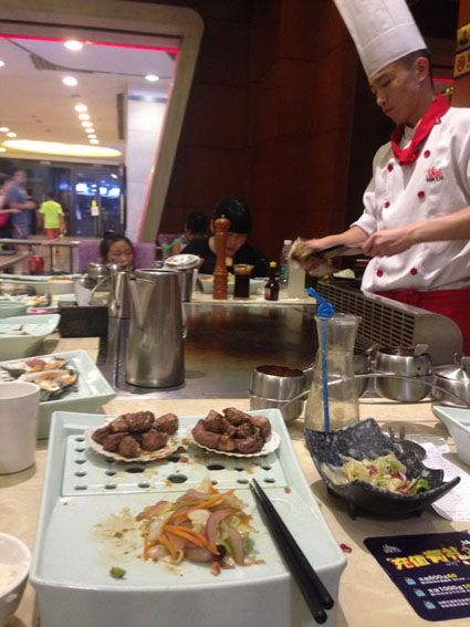 ที่สำคัญคือมันอร่อยมากเลยล่ะ ฮือ... คนฉงชิ่งเขากินเผ็ดอยู่แล้ว รสชาติอาหารฉงชิ่งเลยค่อนข้างถูกปากคนไทย แต่เมืองไทยเขาไม่เสิร์ฟกันชามใหญ่แบบนี้ กับข้าวแค่สองอย่างกินกันสามคน กินยังไงก็กินไม่หมด สุดท้ายต้องห่อกลับเอาไว้เป็นมื้อเย็นที่สนามบินได้อีกมื้อ