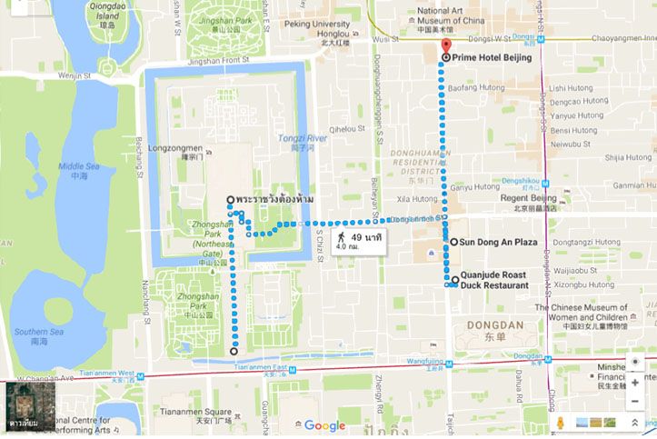 พระราชวังต้องห้าม > ถนนหวังฟูจิง 1.5 กิโล (18 นาที)