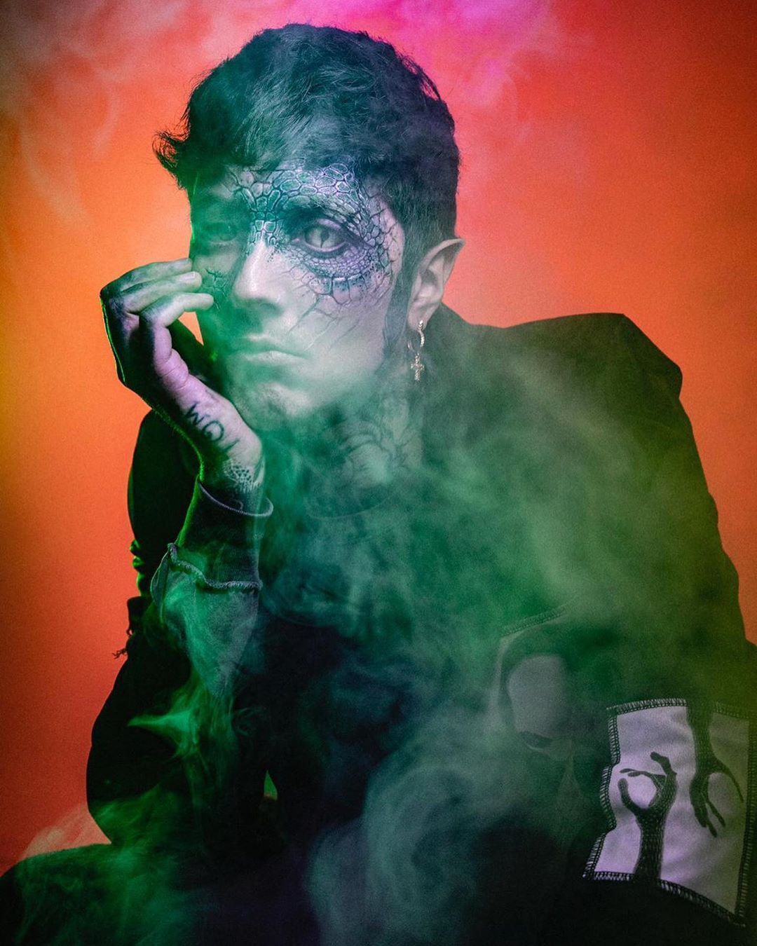 T-O-M อยู่ตรงสันนิ้วสุดท้าย ใต้เกล็ดสีดำที่กินแขนเขาไปเกือบทั้งแขนแล้ว