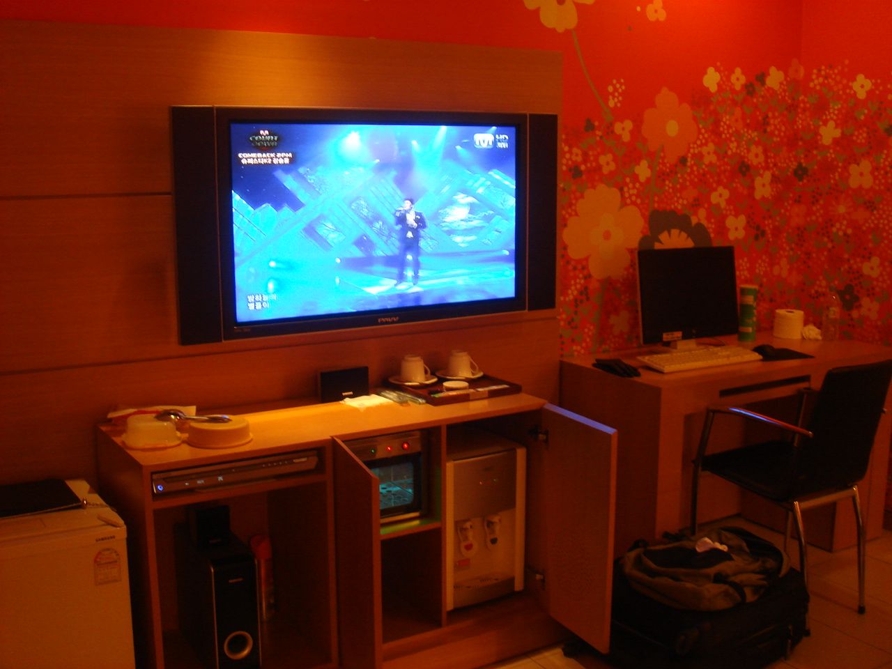 ความกังวลที่เจ็ด ข้าวของเครื่องใช้ภายในห้องพักนั้น เครื่องใช้ไฟฟ้าเยอะแยะมากมาย สมกับเป็นเมือง High-Technologyจริงๆ แต่เมื่อเราต้องการจะเปิดแอร์นั้น... อากาศเย็นสบายข้างนอกก็จริง แต่ในห้องอากาศดูจะไม่ถ่ายเทเท่าไหร่ แต่.. แต่.. เปิดแอร์ยังไงล่ะ กดปุ่มแอร์ก็แล้ว ลดเพิ่มอุณหภูมิก็แล้ว ปรับระดับความแรงก็แล้ว แอร์ ... ไม่ทำงาน ฉัน ...นอนหมดแรงไปกับการเดาคำใบ้จากหนุ่มน้อยเมื่อครู่นี้ ลูกเรือจึงทำหน้าที่โทรไปหาสาวน้อยข้างล่างอีกรอบ ทางเราถามเธอเป็นภาษาอังกฤษ เธอตอบเป็นภาษาเกาหลีปนภาษาอังกฤษหรือจะเรียกว่าเป็นคำทับศัพท์ก็ดูจะไม่ผิดนัก หลังจากได้คำใบ้มาเพียง 20% ลูกเรือวางโทรศัพท์และถอดรหัสอย่างขะมักเขม้น จน..ปัญ..ญา ตัดสินใจโทรหาสาวน้อยข้างล่างอีกครั้ง คราวนี้จับใจความได้ว่ารีโหมดแอร์อยู่ที่เดียวกับรีโมททีวี... เออดี