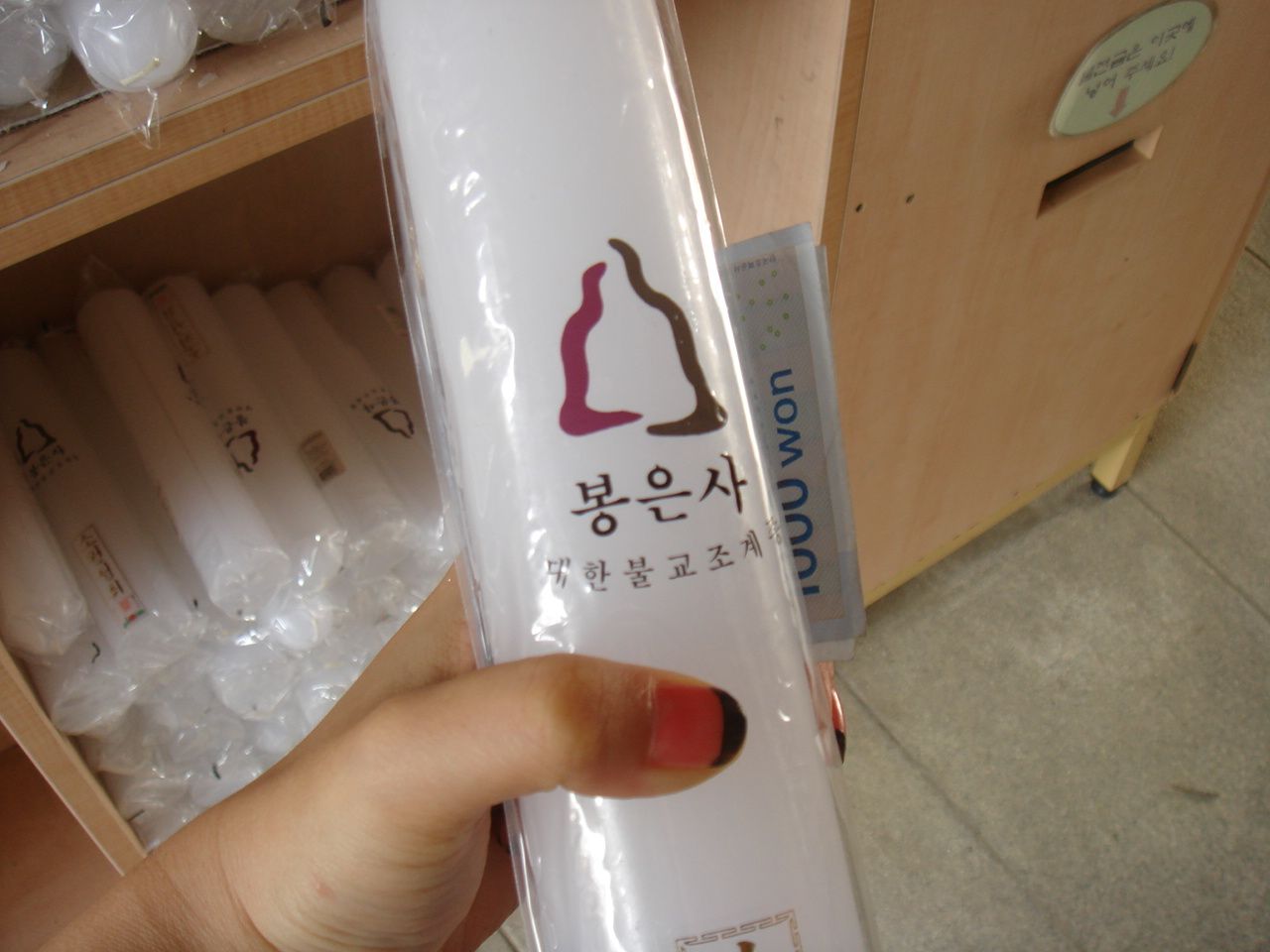 และแล้วก็ใช่จริงๆ ให้มันได้อย่างงี้ทุกทีสิน่า สอยเทียนกันมาคนละแพคมีสองขนาดให้เลือก ขนาดใหญ่มีหนึ่งเล่ม ขนาดเล็กลงมาหน่อยมีสองเล่ม ราคาเท่ากัน ถ้าจำไม่ผิดประมาณสองพันห้าร้อยวอน หยอดลงตู้ไปเลย