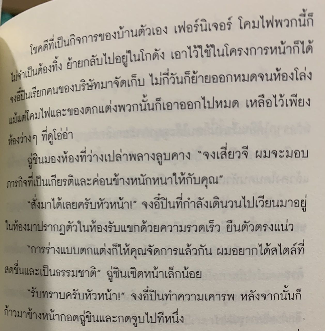 - หลังจากแต่งงานก็คือจะย้ายบ้านไง พอไปดูก็คือการตกแต่งไม่ได้แบบไม่ได้เลย ไม่มีความโฮมมี่เลย ก็เลยต้องตกแต่งใหม่ ทางฉู่ชินที่งานเยอะมากเลยให้จงอี๋ปินไปจัดการ ละไงอะ ความเบียวของคุณพี่ ใช้การไม่ได้ ฉู่ชินก็ต้องมาเคลียร์หาจุดที่ลงตัว