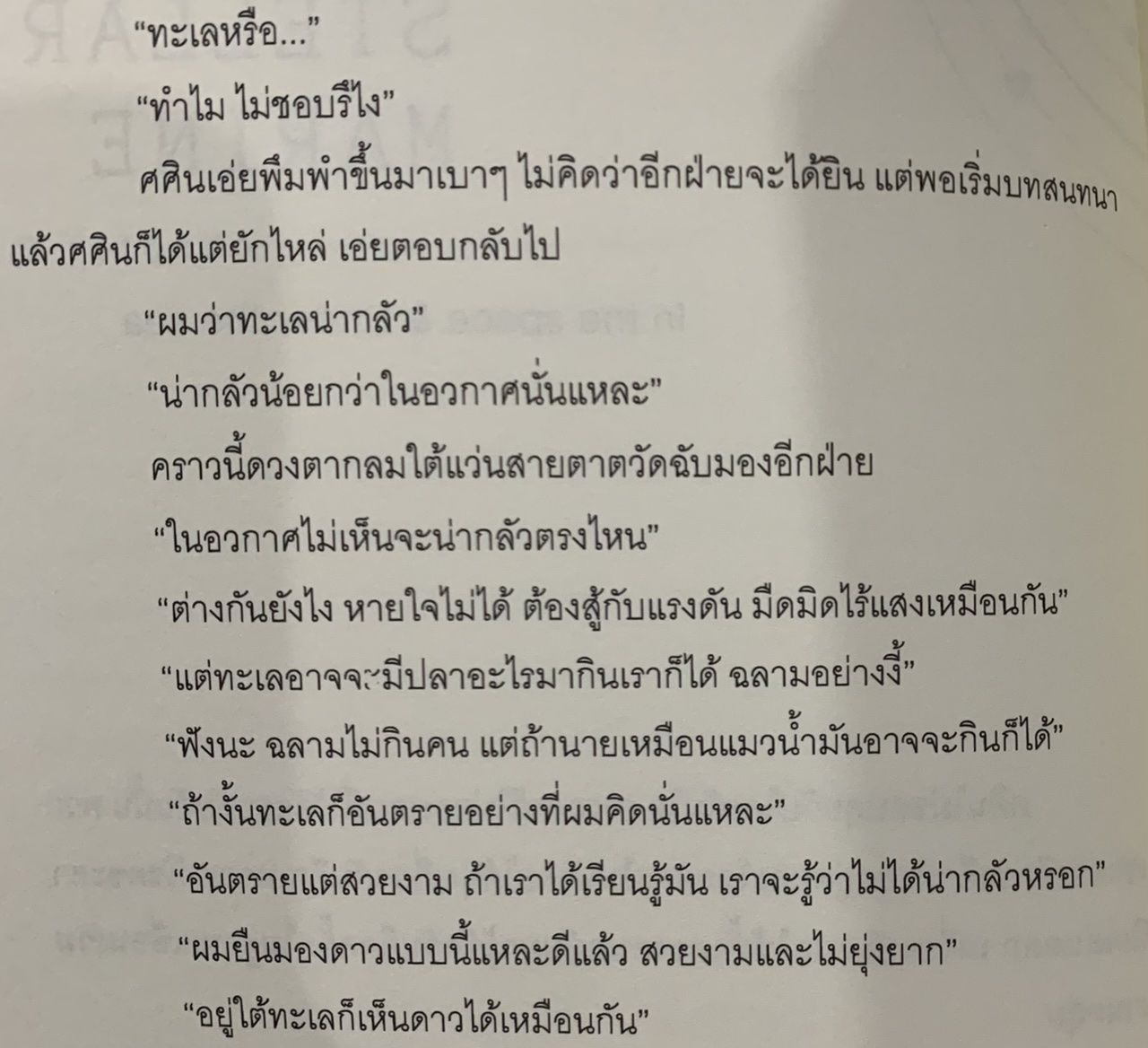 - การใช้คำแทนตัวละครเกี่ยวกับสิ่งนั้นๆที่ตัวละครนั้นสนใจก็คือน่ารักดี แบบว่าจ้าวสมุทร,ปลาหมึกยักษ์แทนตัวอรรณพ ดวงจันทร์แทนตัวศศิน แล้วพอฉากอย่างว่าก็จะแบบดวงจันทร์จมอยู่ในห้วงมหาสมุทรอะไรอย่างนี้
