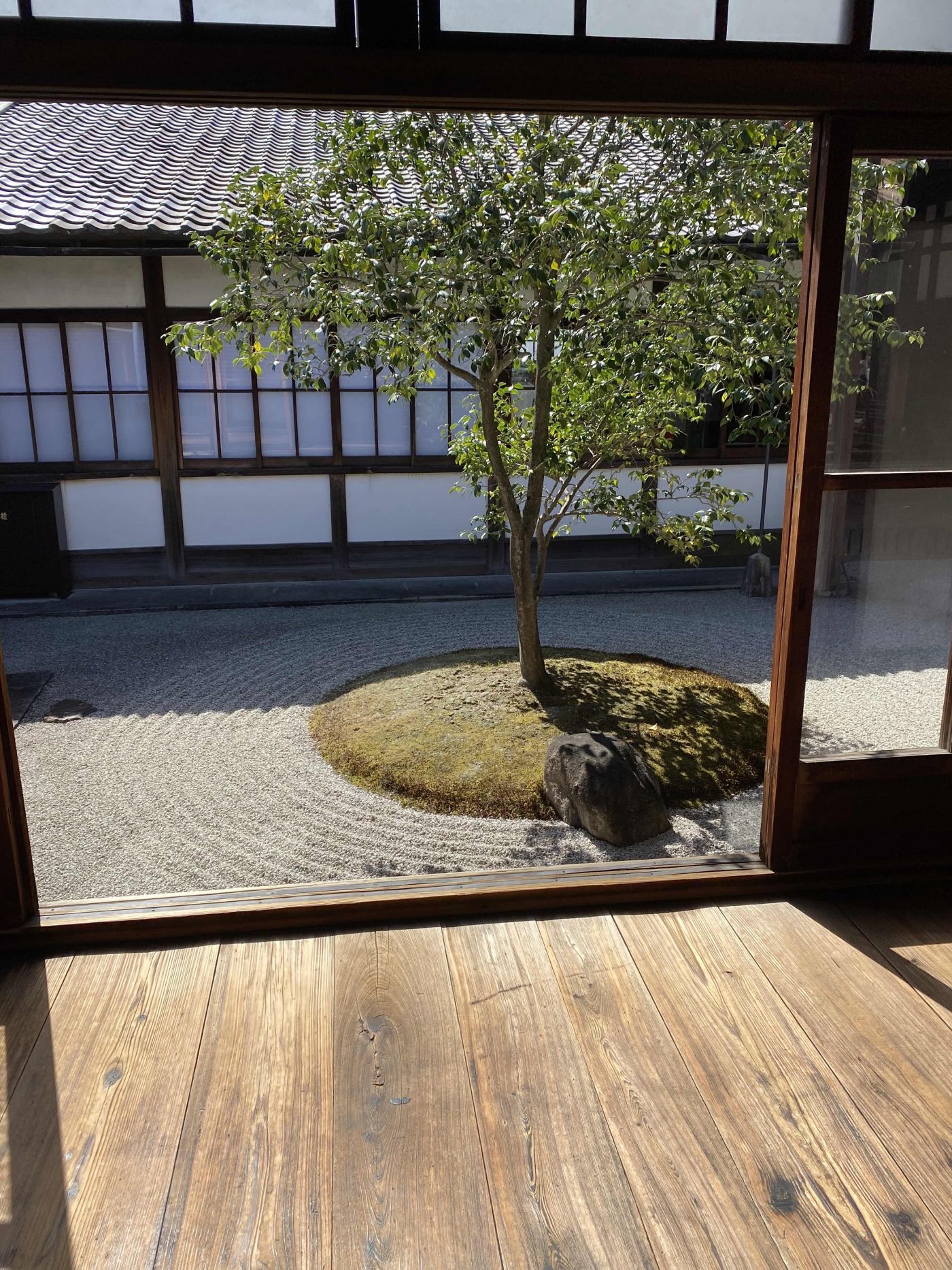 ก่อนที่จะมาเกียวโต ผมมีสิ่งที่ตั้งใจไว้คือ อยากมาเห็นสวนหินแบบเซน หรือที่เรียกว่า Kare-sansui ซึ่งเป็นสวนสไตล์มินิมอลที่ใช้ก้อนหิน ทรายสีขาว และพืชจำพวกตะไคร่น้ำ มาจัดให้เป็นสวนที่ดูสงบและสวยงาม เป็นสวนที่ให้นั่งมองเพื่อชื่นชมความงามแบบเซน ซึ่งคือการเข้าถึงความเป็นหนึ่งอันเดียวกันของมนุษย์และธรรมชาติ (ผมเดาเอา ว่านี่ทำให้สไตล์ "มินิมอล" ถือกำเนิดขึ้น มันคือการลดทอน หรือการปรุงแต่งสิ่งใดให้น้อยที่สุด ให้เหมือนกับวิถีของธรรมชาติ)