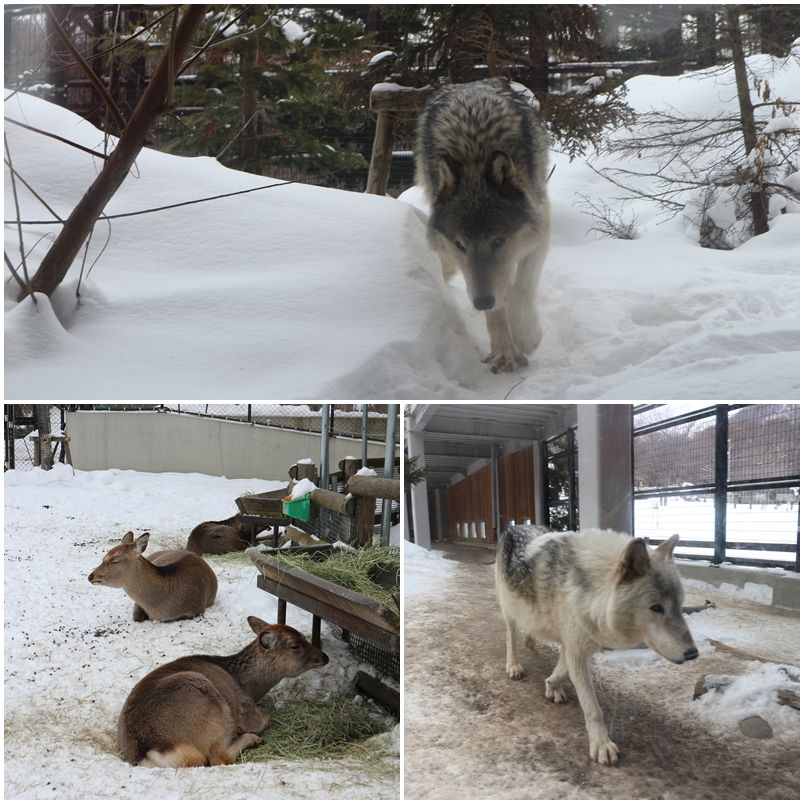 แล้วก็มีสัตว์ที่อยู่ในสภาพอากาศหนาวได้ เช่น กวางเอโสะ หมาป่า