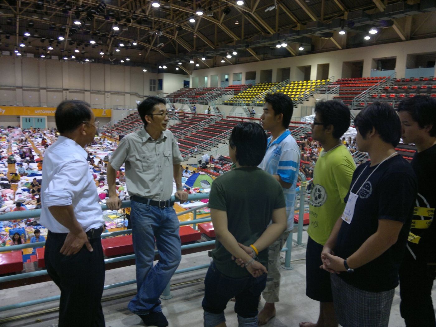ทีมของผู้เขียนและเพื่อน ในเวลานั้นได้รับหน้าที่จากอาจารย์ปริญญา ให้เป็นผู้ดูแลเรื่องของการจัดสถานที่ ให้กับผู้ประสบภัย ที่เพิ่มจำนวนจากเดิมที่อยู่ยิม 2 แต่ไม่เพียงพอต่อปริมาณของผู้ประสบภัย จึงต้องเปลี่ยนมาใช้ยิม 1 หรือหอประชุมใหญ่ของมหาวิทยาลัย ที่วามารถจุคนได้หลายหมื่นคน โดยมีทีมของผู้เขียนและเพื่อน ทั้งสิ้น 7 คนถ้วน ในการรับหน้าที่ดูแลเรื่องของที่หลับที่นอนของผู้ประสบภัย