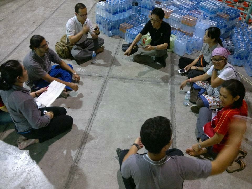 เรียกได้ว่าช่วงเวลาดังกล่าวเป็นช่วงที่หายนะที่สุดในชีวิต นับตั้งแต่เกิดมา เพราะกว่าจะจัดที่นอน ขัดห้องน้ำ เปลี่ยนหลอดไฟ ซ่อมก๊อกน้ำ ฯลฯ ด้วยคนเพียง 7 คน เพราะตอนนั้นยังไม่มีการเปิดรับจิตรอาสาจากภายนอกให้เข้ามาช่วยเหลือผู้ประสบภัยด้วย จำได้ว่าช่วงวันแรก ๆ ของการก่อตั้งศูนย์ ผู้เขียนและเพื่อนทั้ง 6 ได้เข้านอนตอนตี 2 พร้อมกับส้วมกระดาษที่ต้องช่วยกันประกอบให้เสร็จหลายร้อยตัว และตื่นขึ้นมาอีกทีตอนตี 5 เพื่อจัดการเรื่องสถานที่ต่อ